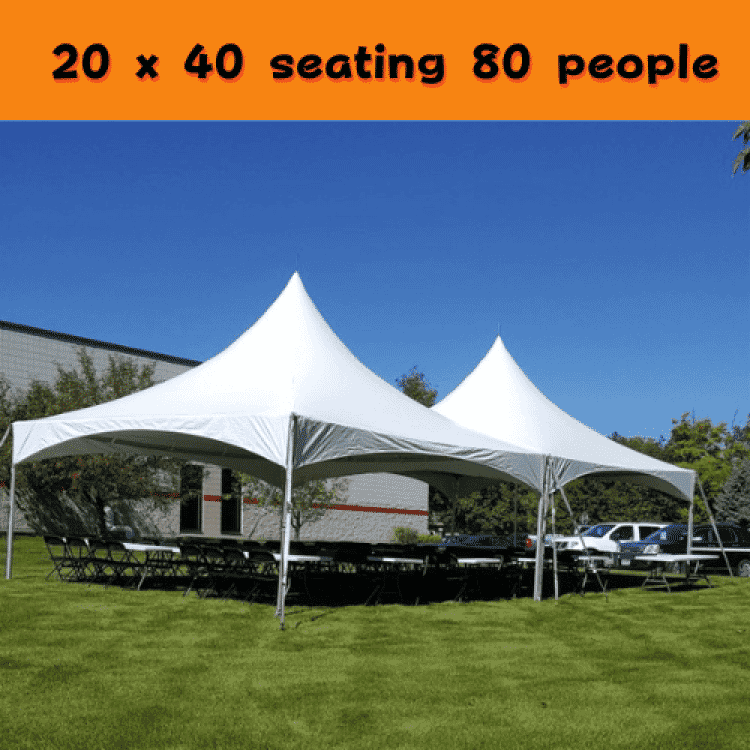 This 20-by-40 white high peak frame tent offers a spacious, modern shelter ideal for any outdoor event. Its sturdy frame and elegant design provide both style and practicality, making it a choice for parties, festivals, or community gatherings.